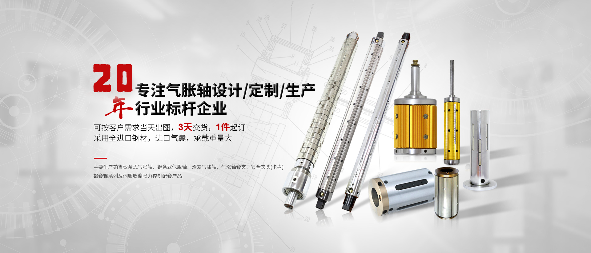 天機匯集各種類型氣脹軸,安全卡盤、氣漲夾套、斷電剎車、CNC零件加工,規(guī)格齊全,庫存充足、大量現(xiàn)貨,廠家直發(fā),完善的物流(順豐、速爾、德邦、郵政)服務(wù)體系,免費送貨上門。